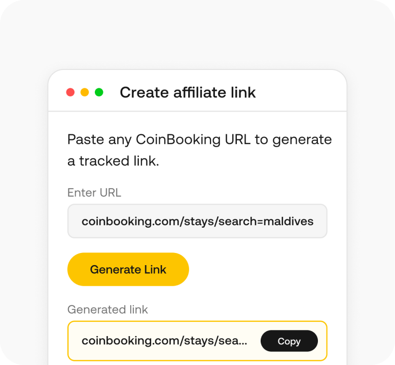 Follow our guide to promote your content and get it out into the world. It's easy to get set up and and access everything through CoinBooking's affiliate dashboard.